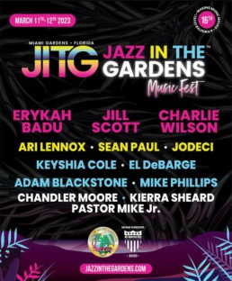The internationally acclaimed Jazz in the Gardens Music (JITG) Festival marks its 16th annual “sweeter level” celebration of Black music and culture with an electric artist lineup of award-winning R&B, neo-soul, reggae and gospel artists, including Erykah Badu, Jill Scott, Jodeci, Ari Lennox, El Debarge, Sean Paul, Mike Phillips, the Adam Blackstone Experience, and Gospel Super Trio Chandler Moore, Kierra “Kiki” Sheard and Pastor Mike Jr. The two-day, weekend festival will return to the Hard Rock Stadium on Saturday, March 11th and Sunday March 12th, 2023.
